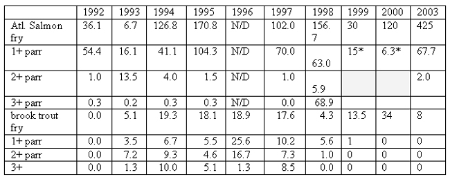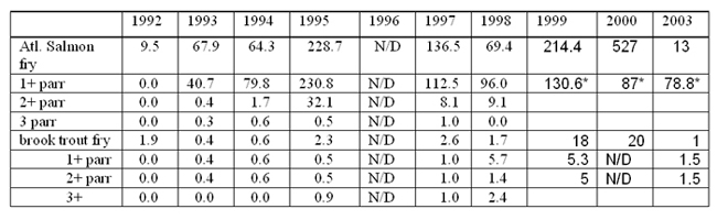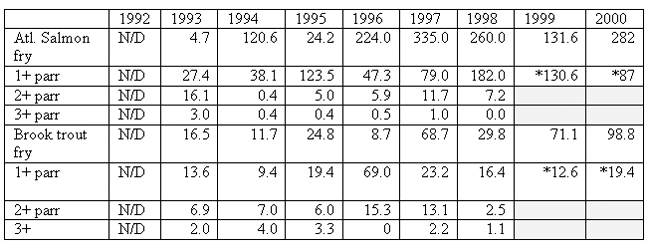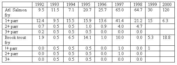 grilse (one sea year salmon) and in 2000 as adults. Sea run