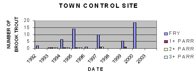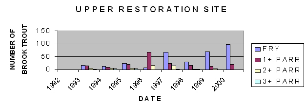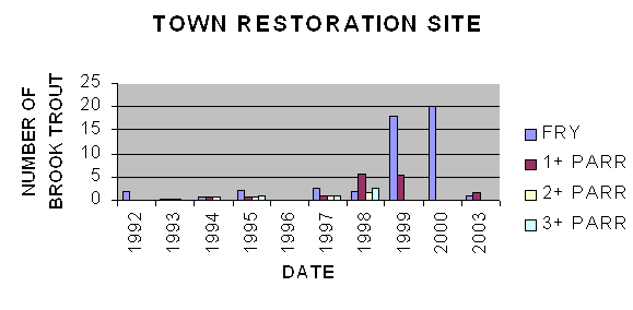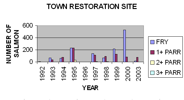 Great blue herons were a common sight along the brook in past summers, feasting on salmon parr. With improved water depth and instream cover, the fish are harder to catch and the herons have moved elsewhere.