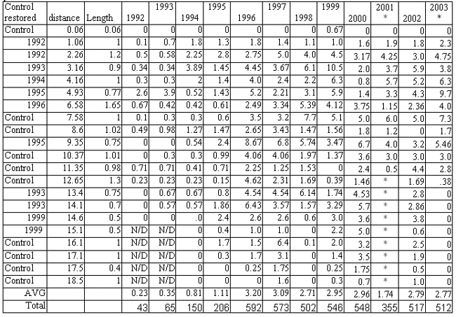 In one example, 140 m of bank was proposed for riprap adjacent to a local campground. During the spring of 1993, there was no further erosion without the riprap. Over the summer, all but 30 m re-vegetated naturally. The remaining 30 m was rocked by hand with small boulders and cobble, then planted.